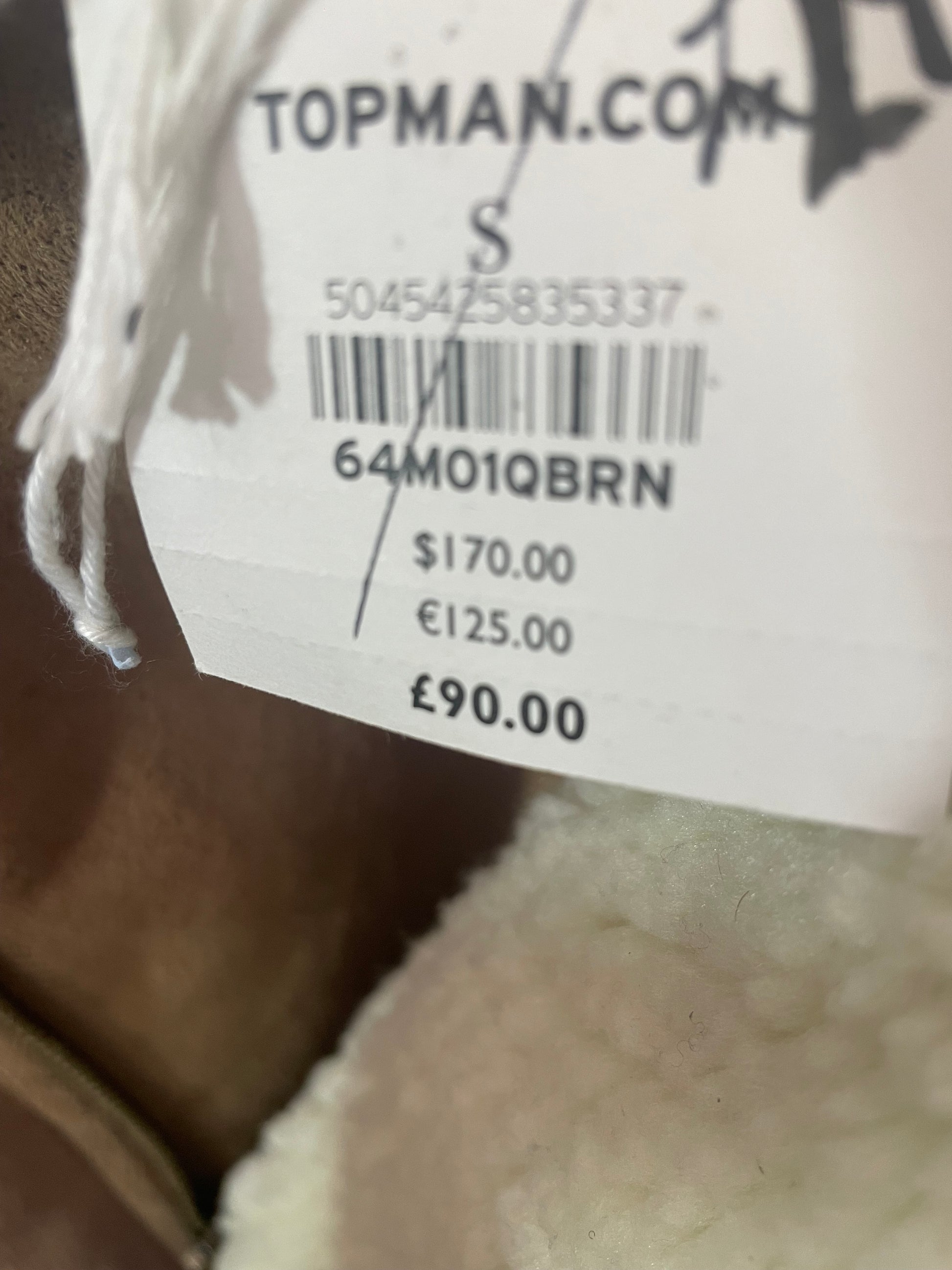 This brand new Men's Size S flight jacket by Topshop is crafted from high-quality faux suede material, giving it a luxurious and stylish look. The jacket features all the classic elements of a flight jacket, making it a versatile and timeless piece for any wardrobe. With its sleek design and durable construction, this jacket is the perfect addition to any fashion-forward man's collection.