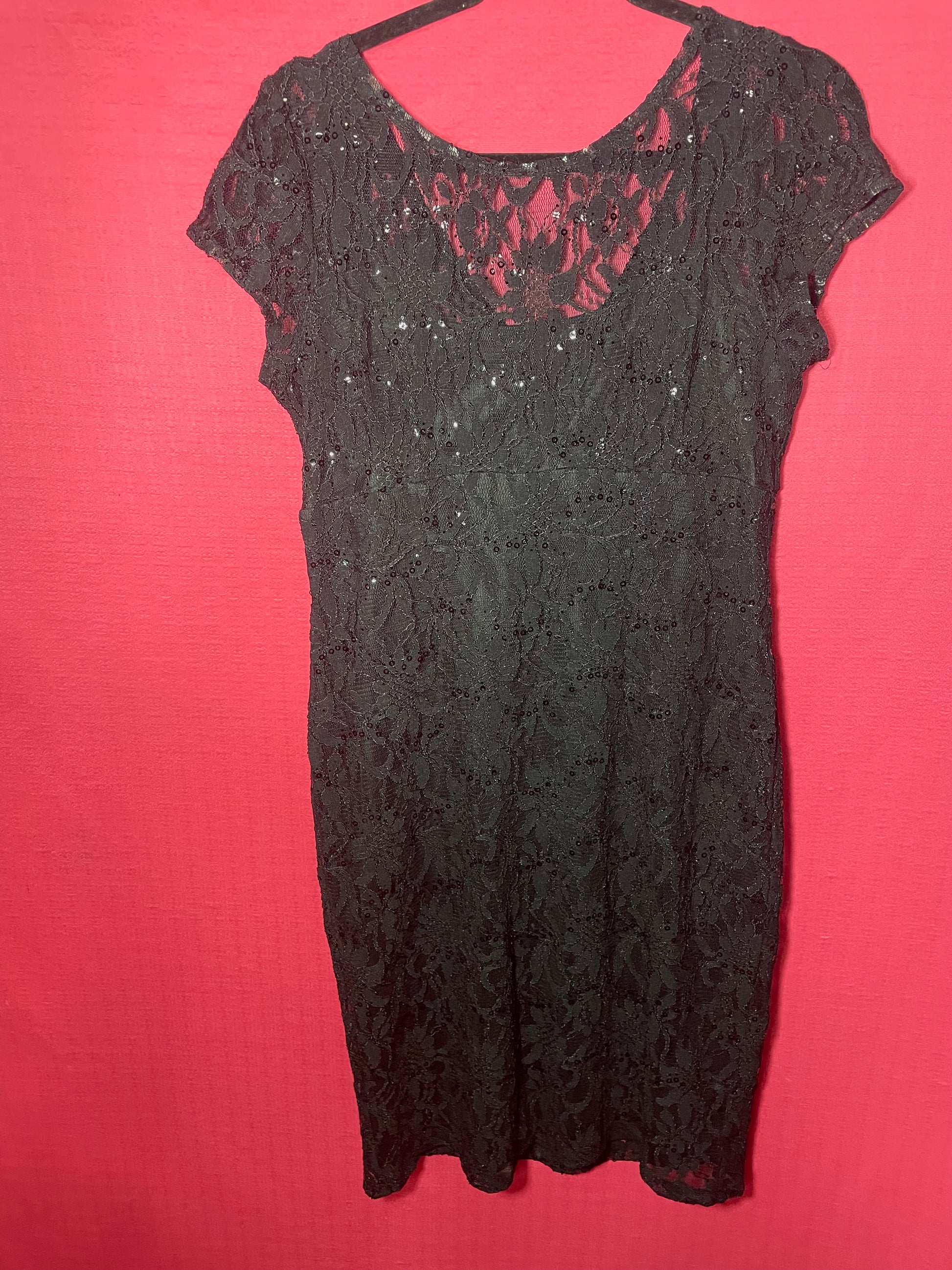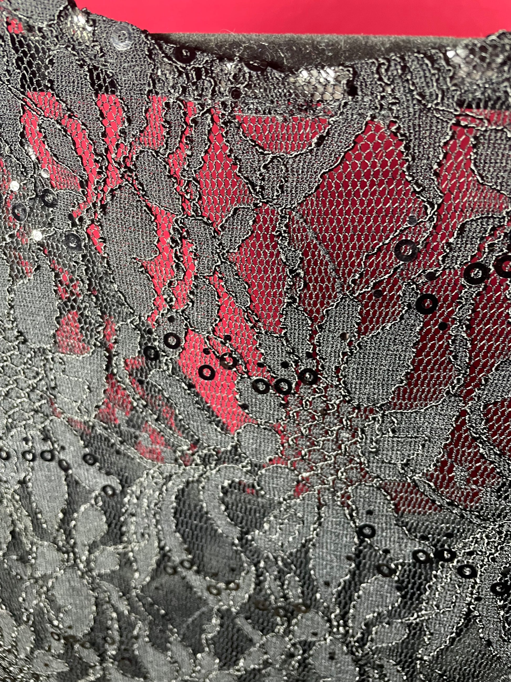 Unleash your daring side with this stunning Size 8/10 Scarlet Lace sequin little black Dress! Featuring sultry lace and shimmering sequins, this dress will make you stand out in any crowd. Very cleverly constructed with inner stretch lining and straps. Be bold, be confident, be unstoppable - make a statement!