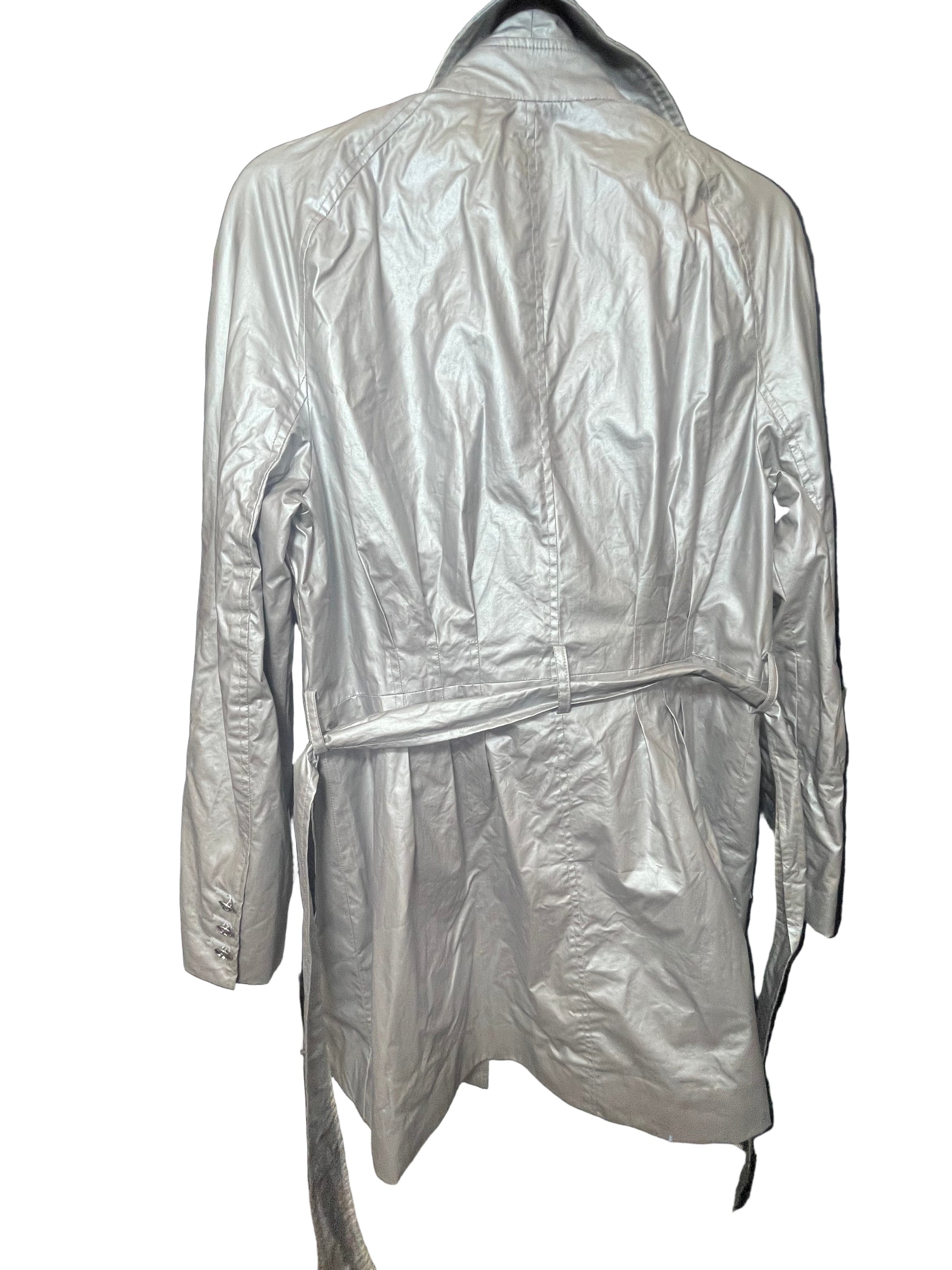 Size M silver metallic raincoat trench by Andrew Marc
